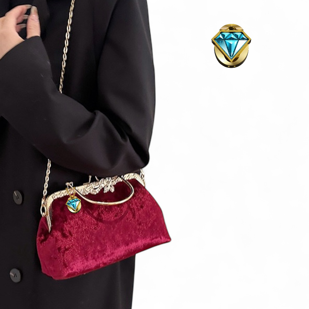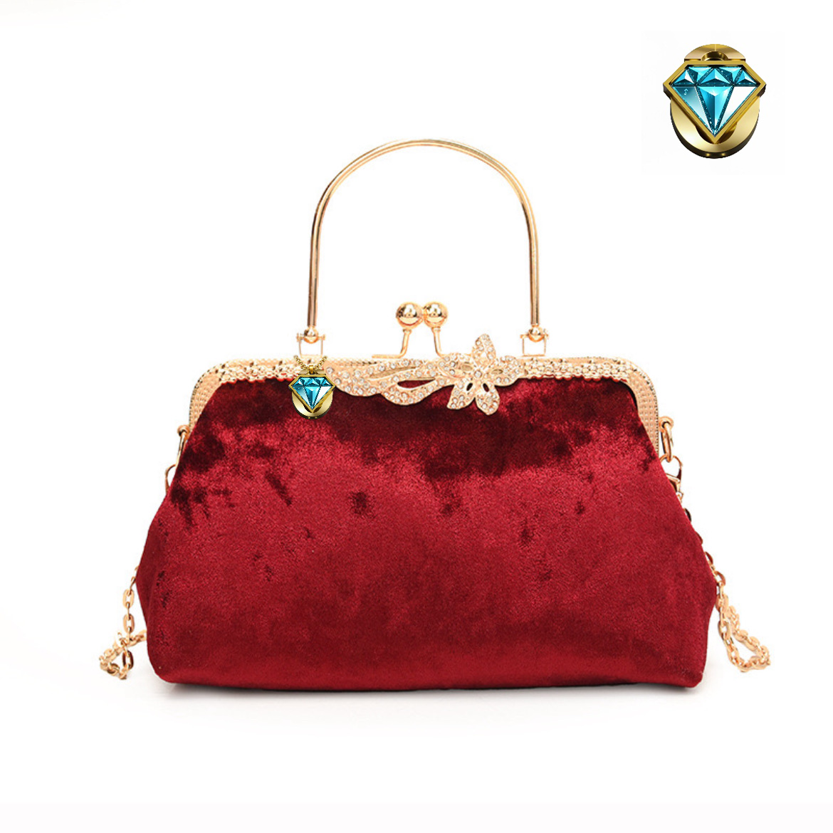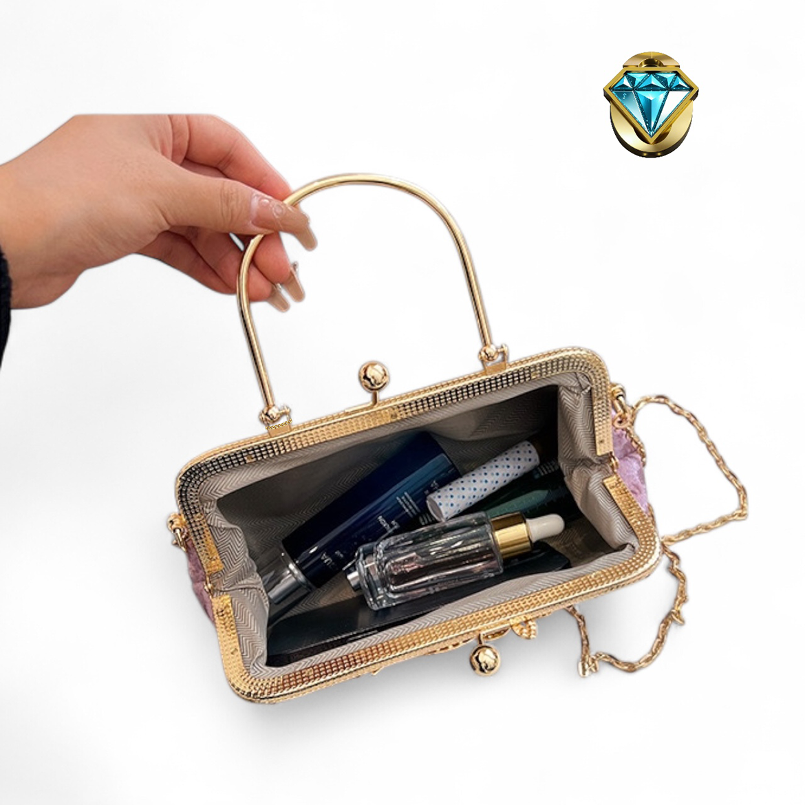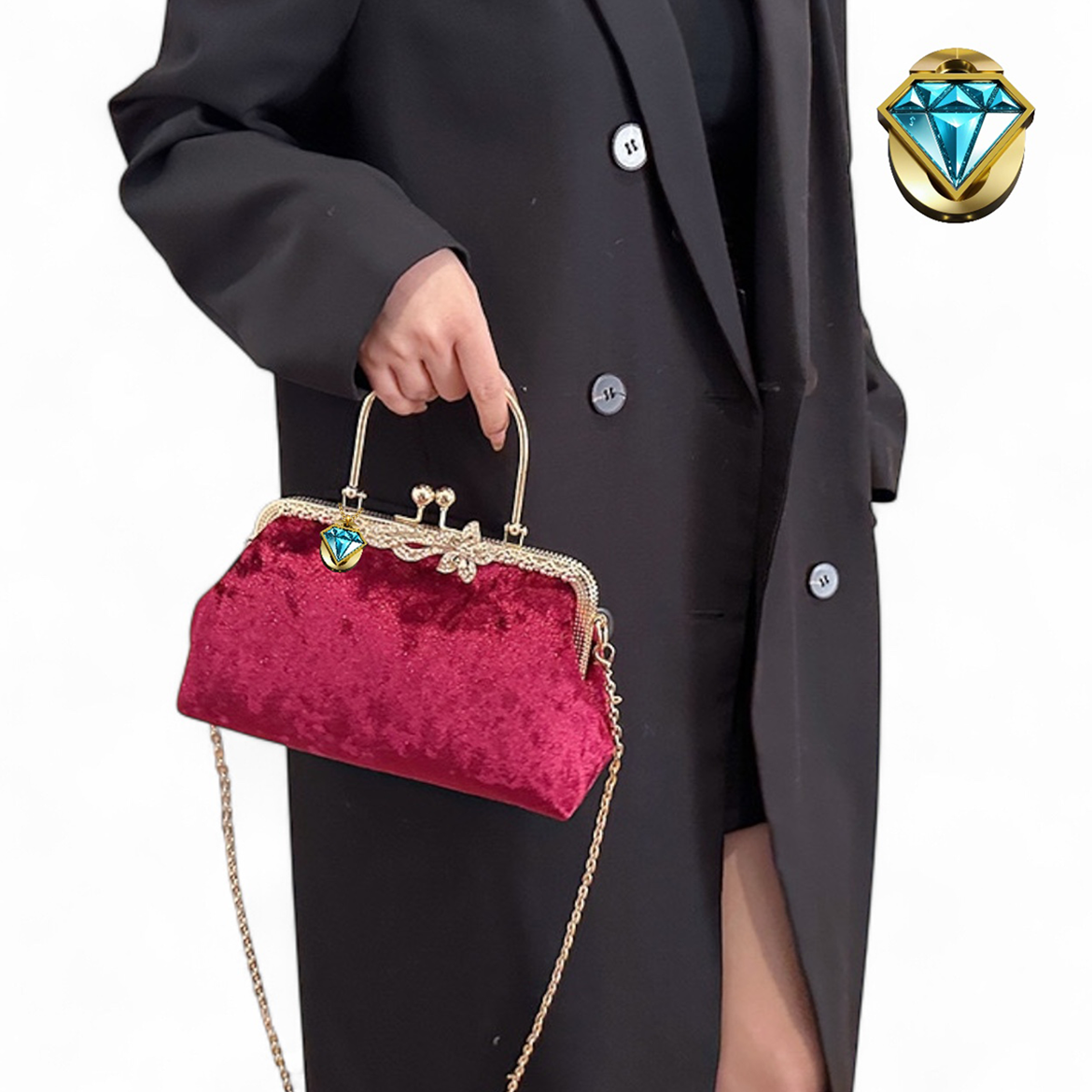 The Elegon Model Bahrain Bag captures the region’s luxurious history. Crafted in sumptuously rich burgundy velvet, its texture evokes the depth and color of the Arabian night sky. The elegant frame is adorned with delicate white lace, reminiscent of Bahrain’s famed pearls and fine craftsmanship. Sized at 25 x 16 x 10 cm and a comfortable 0.4 kg, it provides a classic, structured carry. Ideal for formal majlis gatherings, diplomatic events, or any occasion demanding profound, jewel-toned sophistication.