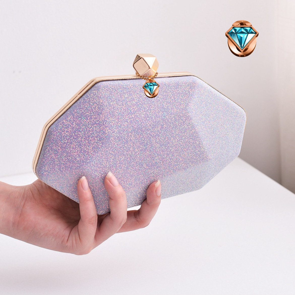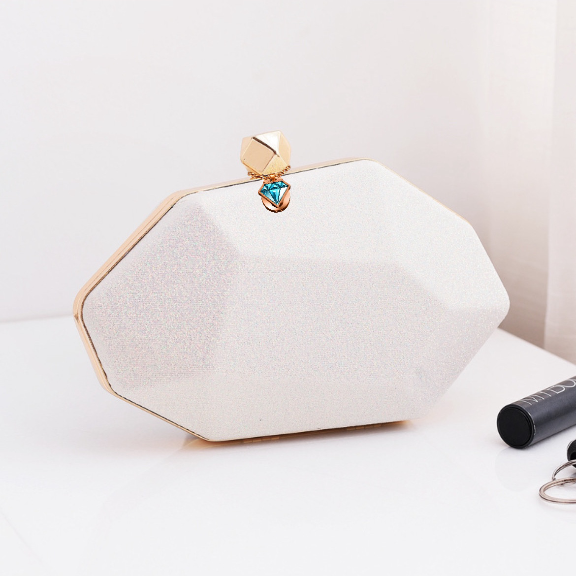 The Elegon Model Laos Bag is a brilliant, multifaceted design. This striking gemstone box clutch features an angular, hard-shell silhouette, reflecting the nation’s natural mineral wealth. Presented in gentle, atmospheric hues, it measures 21 x 5 x 12.5 cm. This 0.5 kg accessory transforms into a jewel in hand. It is perfect for exclusive art auctions, quiet diplomatic receptions, or any evening where profound, clean-lined elegance is preferred.