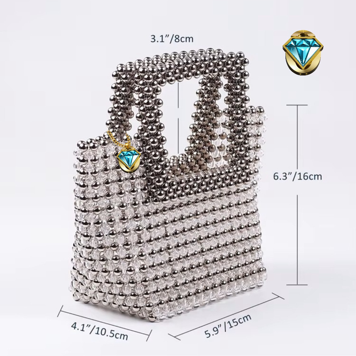 The Elegon Model Greece bag takes inspiration from Greece’s sunlit charm and timeless beauty. Styled in radiant gold, this gold signature bag is a beaded two-tone mini tote designed as your true summer essential. With its stunning finish, this beaded acrylic handbag helps you make a statement wherever you go. Measuring 18 × 15 × 5 cm and weighing 0.85 kg, it is light in hand yet refined in design. Ideal for weddings, seaside dinners, or summer parties, the Elegon Model Greece bag brings effortless elegance to every occasion.